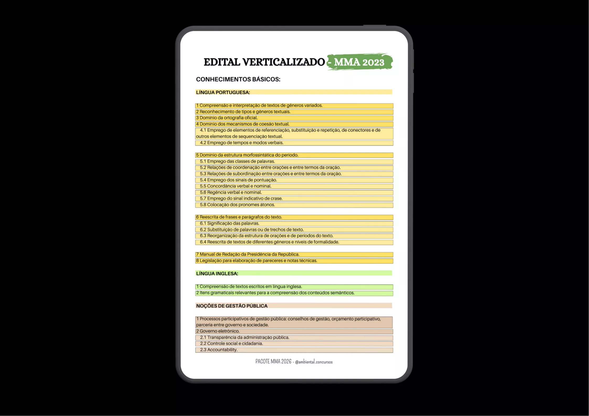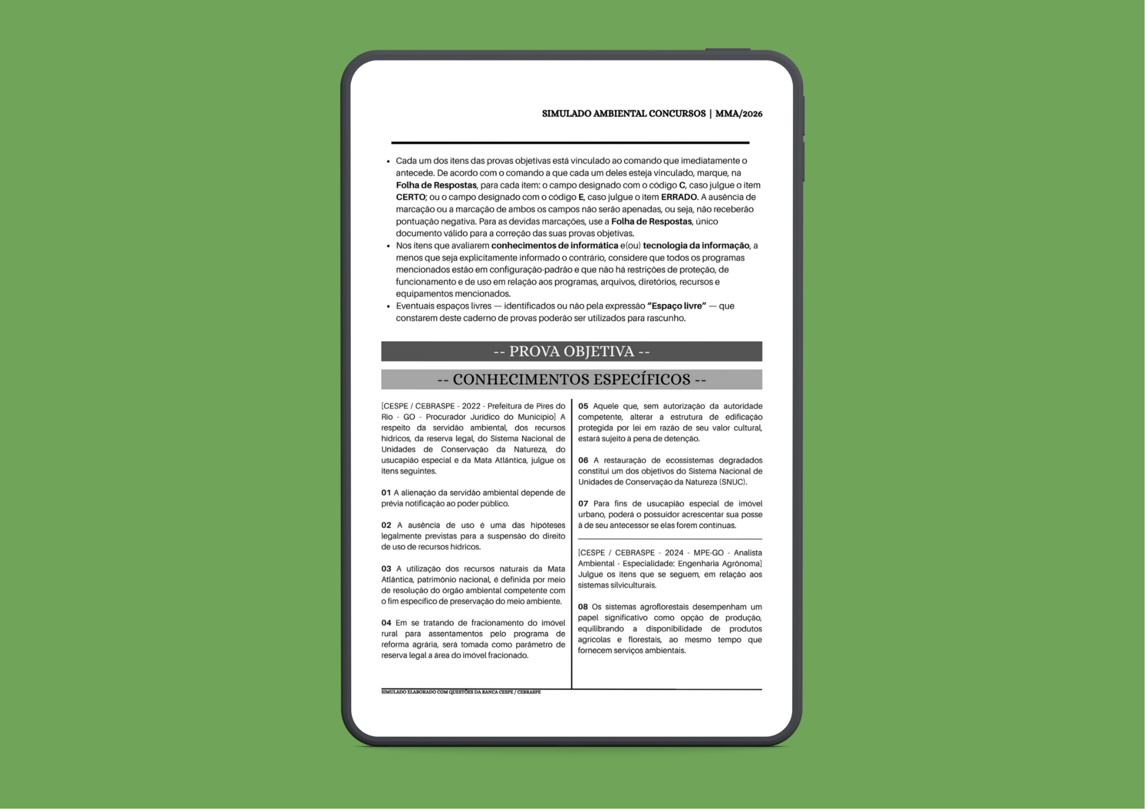 A legislação ambiental é cobrada nos conhecimentos básicos e se repete nos conhecimentos específicos. 45% da prova do edital de 2023 foi sobre as legislações e normas ambientais.